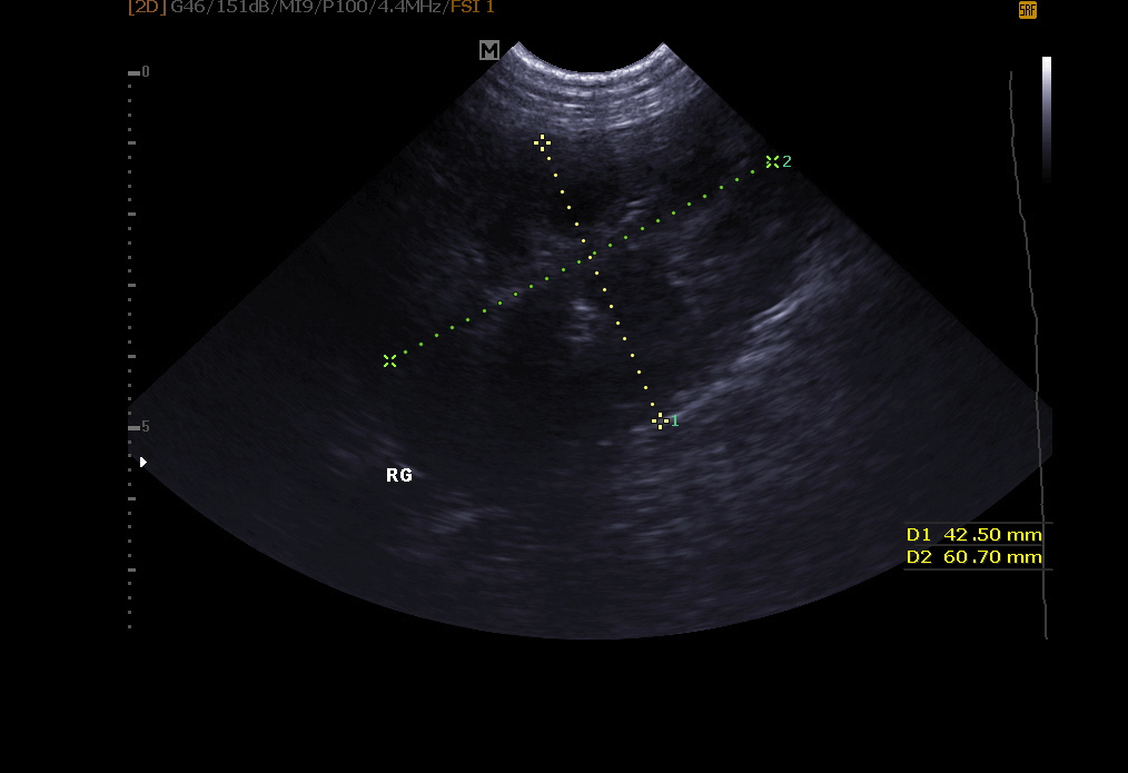 Echographie abdominale: elle permet l’exploration de le vessie (recherche de calculs, polypes, tumeur), des reins, de la rate , du foie , du pancréas et autres organes abdominaux.