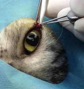 Le traitement post-chirurgical comprend une antibiothérapie par voie générale et antalgique buvable pendant 10 jours. Localement, une goutte d’un collyre est instillée 3 fois par jours pendant 3 jours.