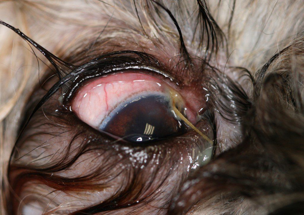Comme chez l’homme, de nombreuses pathologies existent: conjonctivites, kératites, ulcères cornéens, glaucome, uvéite, cataracte, etc…