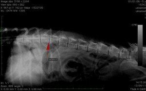 In case of locomotor difficulties, it is possible to identify vertebral lesions. on a radio without preparation. The injection of contrast product in the spine (myelography) is sometimes necessary to visualize possible compressions of the spinal cord (herniated discs) which can be responsible for paralysis in your animal.
