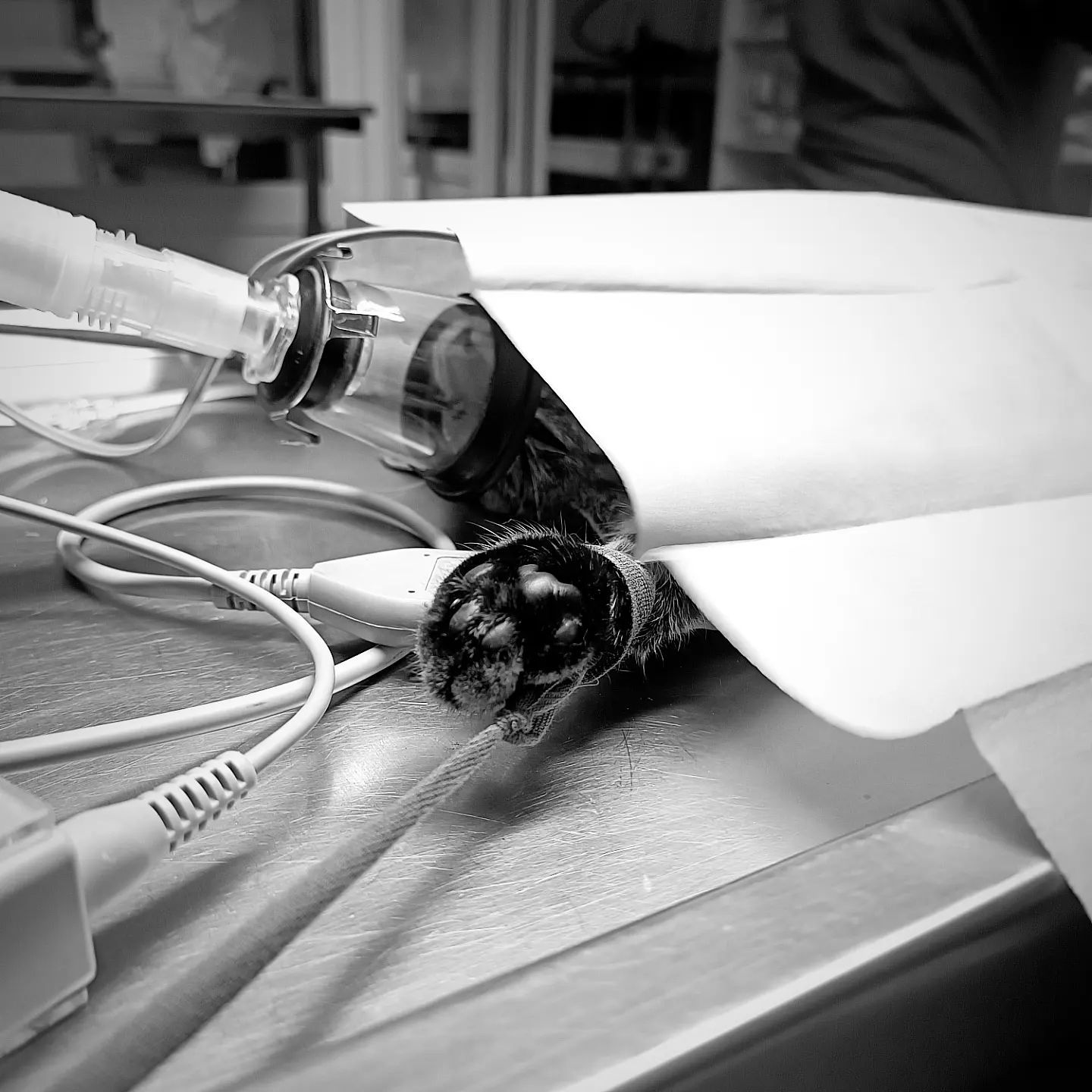 A partir de 8h, l’équipe soignante fait le point sur les soins et traitements de chaque animal hospitalisé, puis chaque chat est réexaminé et ses traitements administrés.